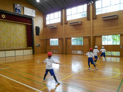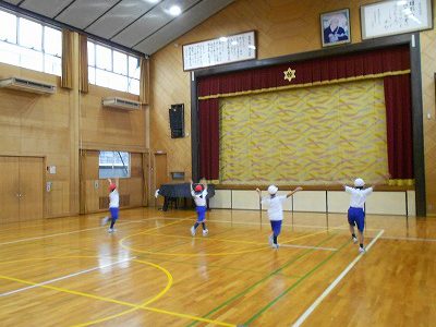 マラソンの予定でしたが、雨のため、体育館で軽く体を動かしました。