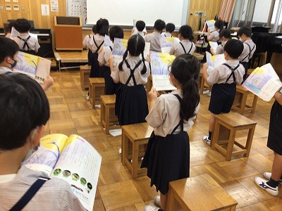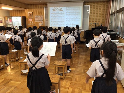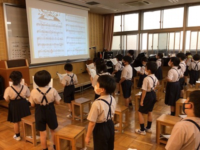 2年生キッズの気持ちが一つになる瞬間のようでした。1番・2番の歌詞を覚えて、気持ちよく歌える日が待ち遠しいです。
