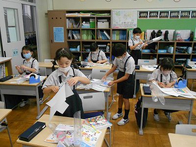 前回の学習で、よく飛んでいた友達のロケットを参考にしたり、作っている途中で飛び具合を確かめたりしながら作っています。