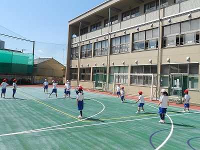 ボールが使える休み時間です。ドッジボールで遊ぶ姿が多く見られました。