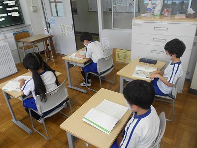漢字練習が終わった人は、1校時のテストに向けて、国語の教科書を読みながら復習をしました。