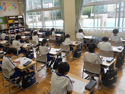 漢字テストの時間です。2年生の新出漢字も、来週の月曜日には終わる予定です。
