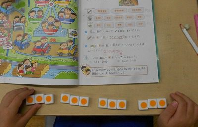 また、ブロックを使って「何このいくつ分」という表し方も学習しました。