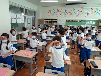 "Where"のジェスチャーをしているところです。文教ニンジャの修行が続いています。