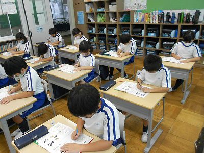 前半は漢字テスト、後半は計算ドリルを使って計算練習をしました。