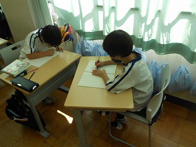 お手本を見ながら、丁寧に書く練習をしています。