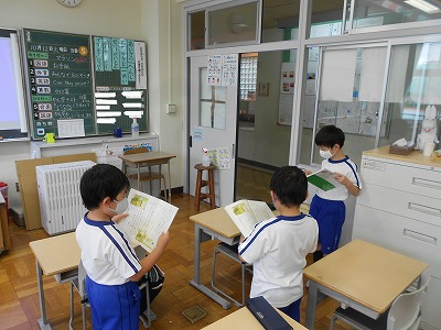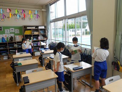 教室に戻った後は、手洗い・消毒・水分補給を終えて、マラソンカードの色塗りを行いました。