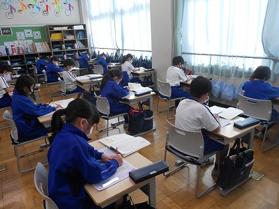 教科書の本文を読んで答えるテストと、言葉・漢字に関するテストの2枚に取り組みました。