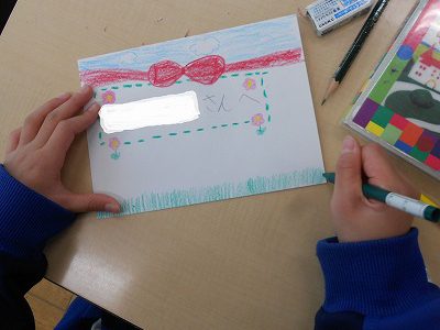 今日は招待状を仕上げた後、1年生に渡す「景品やカードをどのようなものにするか」について話し合いました。