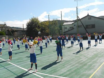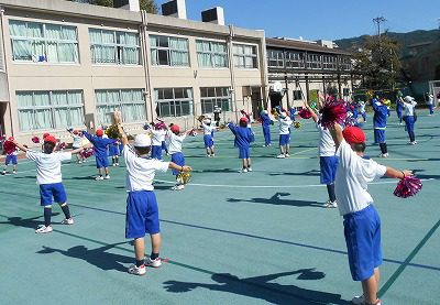 スポーツフェスティバルの低学年演技「あいうえOh!」の練習をしました。