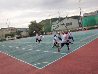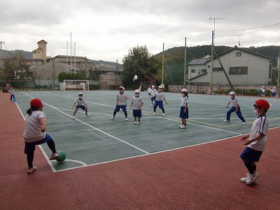 キックベースは、ルールや試合の進め方を思い出しながら、チームで声を掛け合い、協力して楽しんでいました。