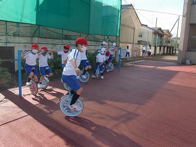 一輪車では「乗れそう」という感じをつかんだ人が増えてきました。