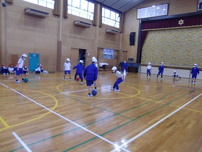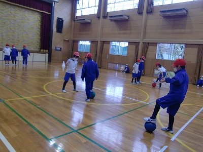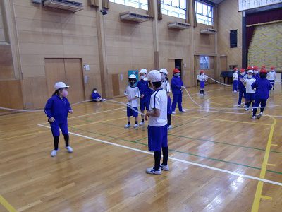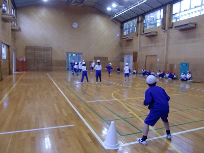 今日は雨天のため、体育館で体育の授業をしました。