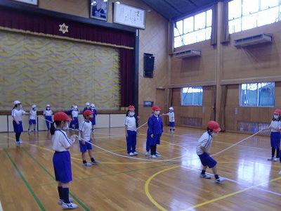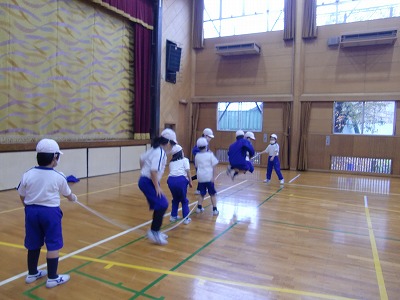その後は、長縄跳びで大波小波をしました。