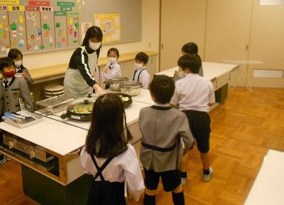 6校時の本の貸し出しの前に、家庭科室に寄りました。