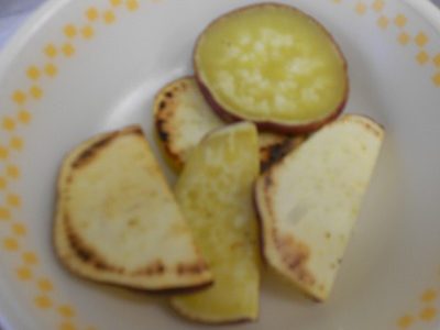 10月26日に収穫したさつまいもを使って、栄養教諭の先生が「やきいも」を作ってくださいました。