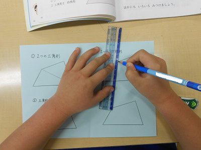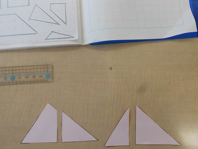 明日は三角定規を使って、「直角」を見つける活動を行います。