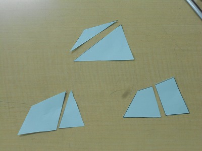 前の時間は、三角形に直線を引き、その直線の上をはさみで切りました。