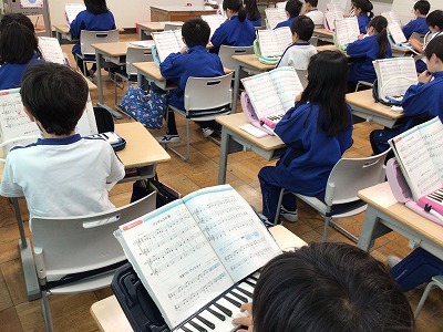 みんなで演奏できるように、家で練習することを進めています。「教科書と鍵ハモを持ち帰って練習するぞ!」という友達が数名いました。