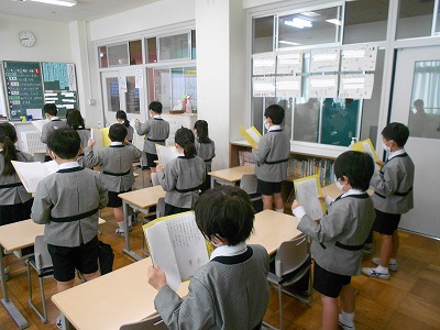 「漢字大会」の音読では、漢字を正しく読むことに加えて、「読点(、)位置」にも注目して「読点の使い方」も学習しています。