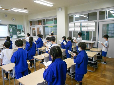最後は、今週木曜日に行う「月かげ集会」に向けて、全校で話し合う内容を確かめました。