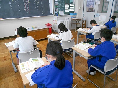 今日は、教科書の絵を見ながら、登場人物の名前や性格を考えました。