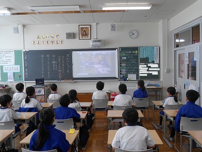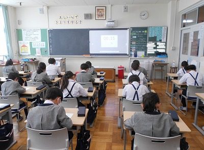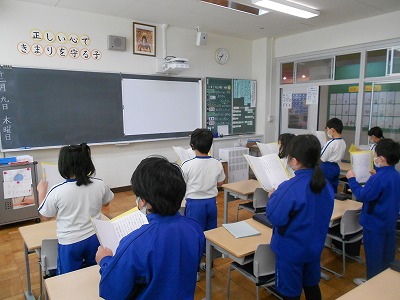 「読点(、)の位置」に気をつけながら、声をそろえて、正しくはっきりと読む練習をしています。
