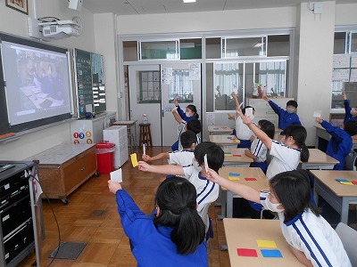 「みんなで考えよう!文教キッズの人権と行動」をテーマに、児童会本部プランニング委員会のメンバーが議題を考えて、進行してくれました。