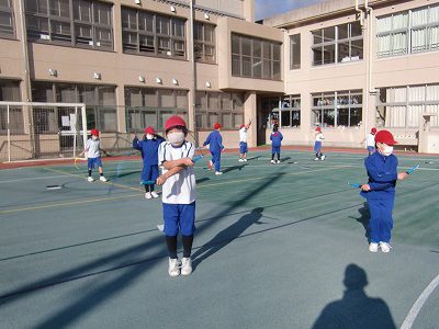 今日は、大波小波で「8の字跳び」の練習をしました。