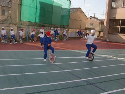 次は、一輪車の練習の様子です。