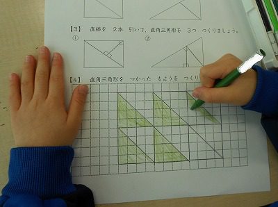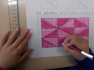 また、直角三角形を使った「もよう作り」にも取り組みました。