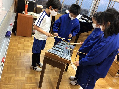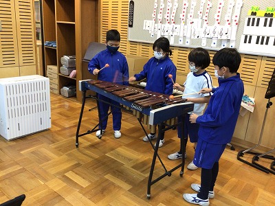 木琴や鉄琴と、楽器のタイプが違う分、音色や響かせ方も異なります。それぞれの特長をよく考えて、音楽作りに取り組めました。