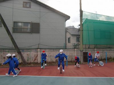 そして、最後に、一輪車の練習をしました。
