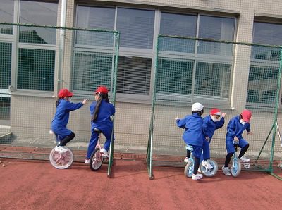 冬休みの間は一輪車に乗れなかったので、調子を取り戻せない人もいましたが、今日は「2学期末の水準までもどってきた」という声を聞くことができました。