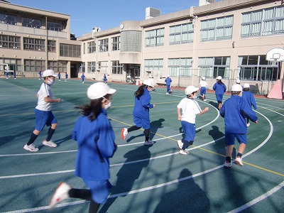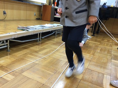 体育でミニマラソンをするため、今週も朝根っこマラソンを変更して、縄跳びの練習をしました。
