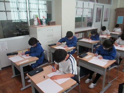 今日は、書きにくい文字や自分の苦手な文字を中心に練習した後、お清書に取り組みました。