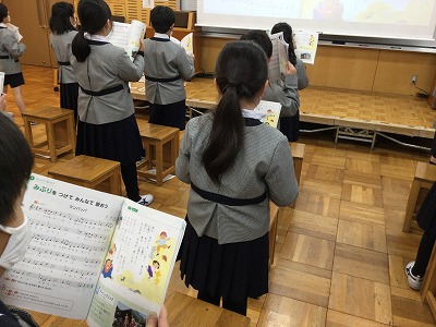 「声を張り上げすぎとちがう?」「声の大きさが合っていないな」と分析してくれました。明日は、お互いの声を聞き合って歌うことに気をつけましょうね。