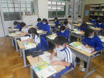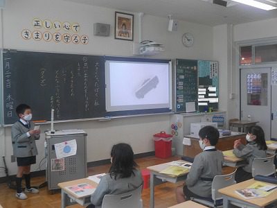 教科書の絵を見ながら、主語と述語のつながりに注意して文を作りました。