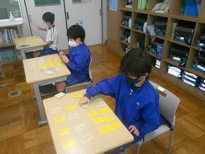 「黄色かるた」の復習をしながら、ビンゴゲームをしました。