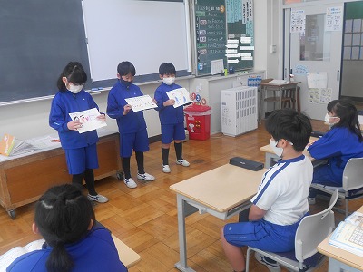 中間休みが終わった後、2つの係がみんなに連絡したいことを伝えてくれました。