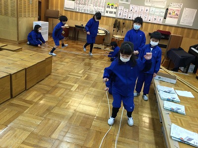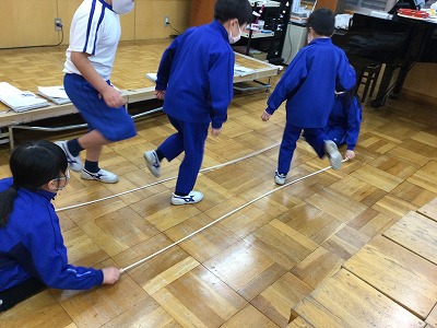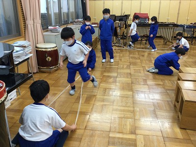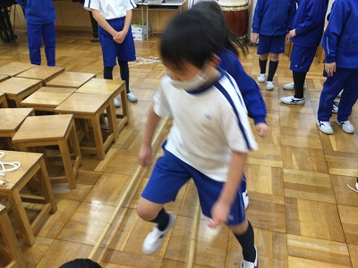 さあ、今日は“歌っておどって”楽しむ時間です。あちらでも、こちらでも“バンブーダンス”ならぬ、“縄跳びダンス”を展開していました。