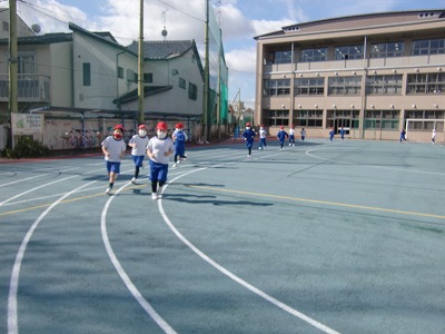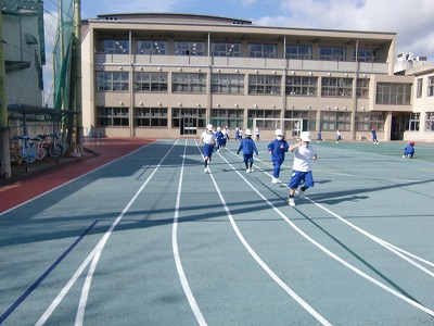 今日の体育は、日差しが暖かい運動場でマラソンから始まりました。