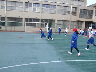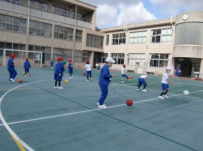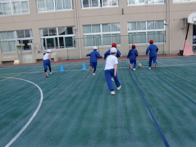 サッカーの学習は、いつもリフティングをして、足をほぐしてから始めています。