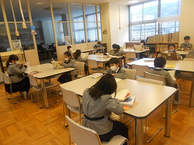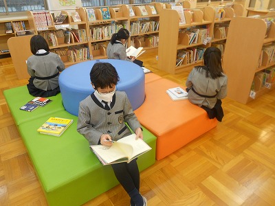 今日は、教室で「金子みすゞさん」「岸田衿子さん」「まど・みちおさん」「工藤直子さん」などの詩集を紹介した後、図書室へ行って、ゆっくり詩集を読みました。