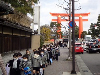 今朝は、全校のみんなで知恩院様へ向かいました。