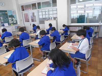 3学期の漢字テストは、毎日「漢字大会」に取り組んでいます。