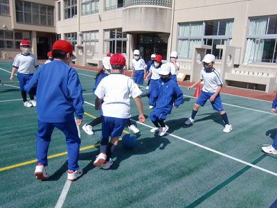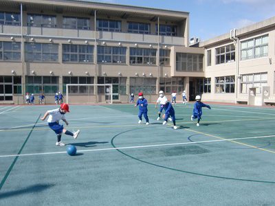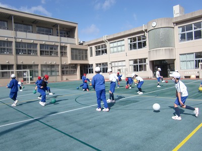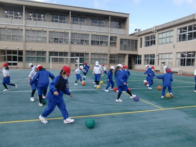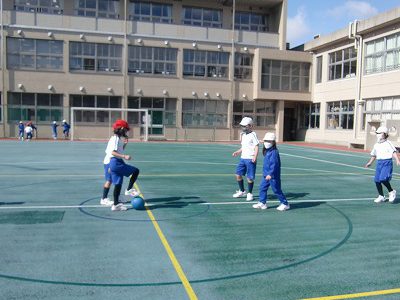 ボールコントロールの練習です。足の裏をうまく使って、ボールをコントロールしています。