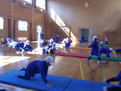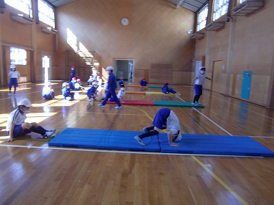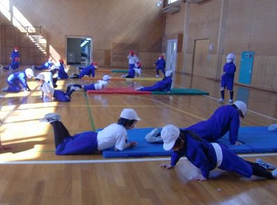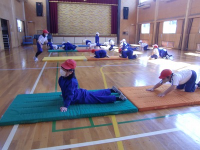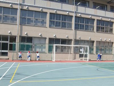 とってもいいお天気になり、気持ちがよい運動場でした。