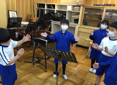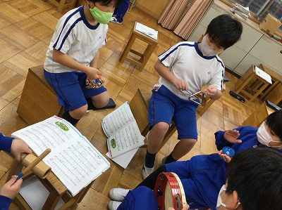 「どの場面で、どんなリズムを入れようか?」を打ち合わせして、練習を開始しました。