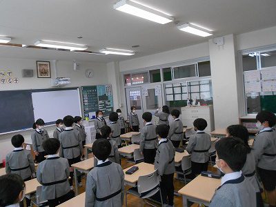 その後、昼根っこタイムのはじめに、みんなに発表の流れや6年生に贈る言葉を連絡してくれました。
